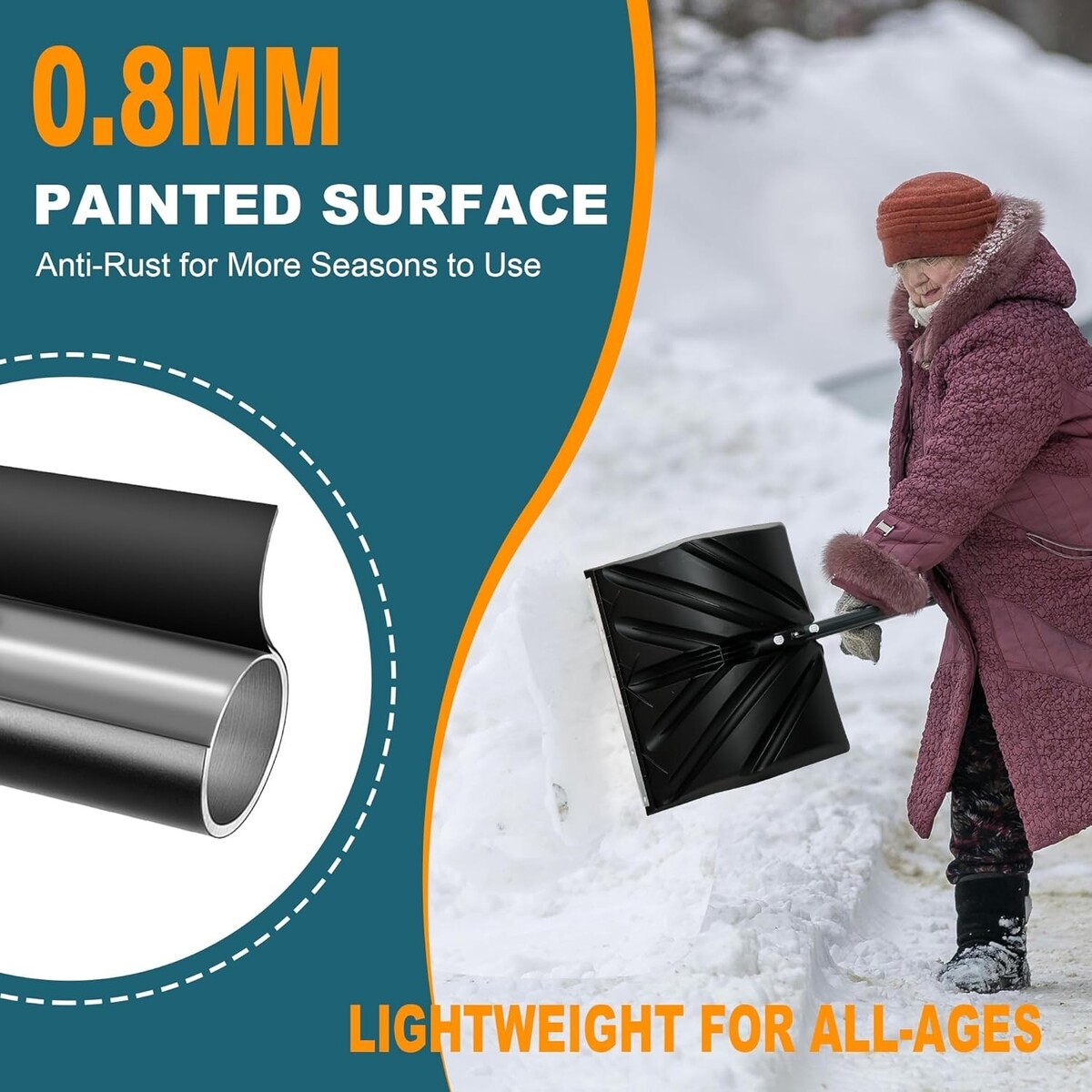 Well-Painted Steel Handles: Say goodbye to rusty tools! Our handles are thick coated with great workmanship to withstand minor scratches, ensuring that your snow shovel remains reliable and ready for action through every winter season.