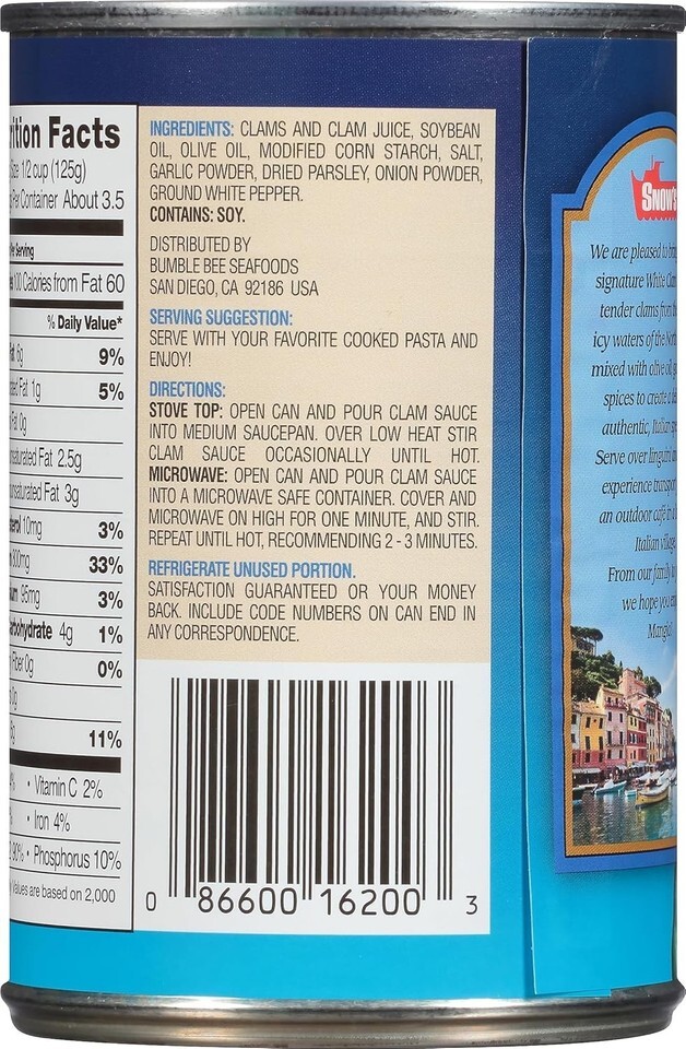 - Snow's Italian Style White Clam Sauce, 15 oz Can - Made with Fresh Clams, Gar...
