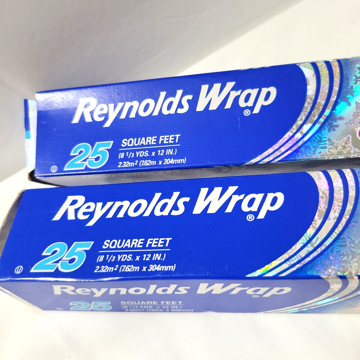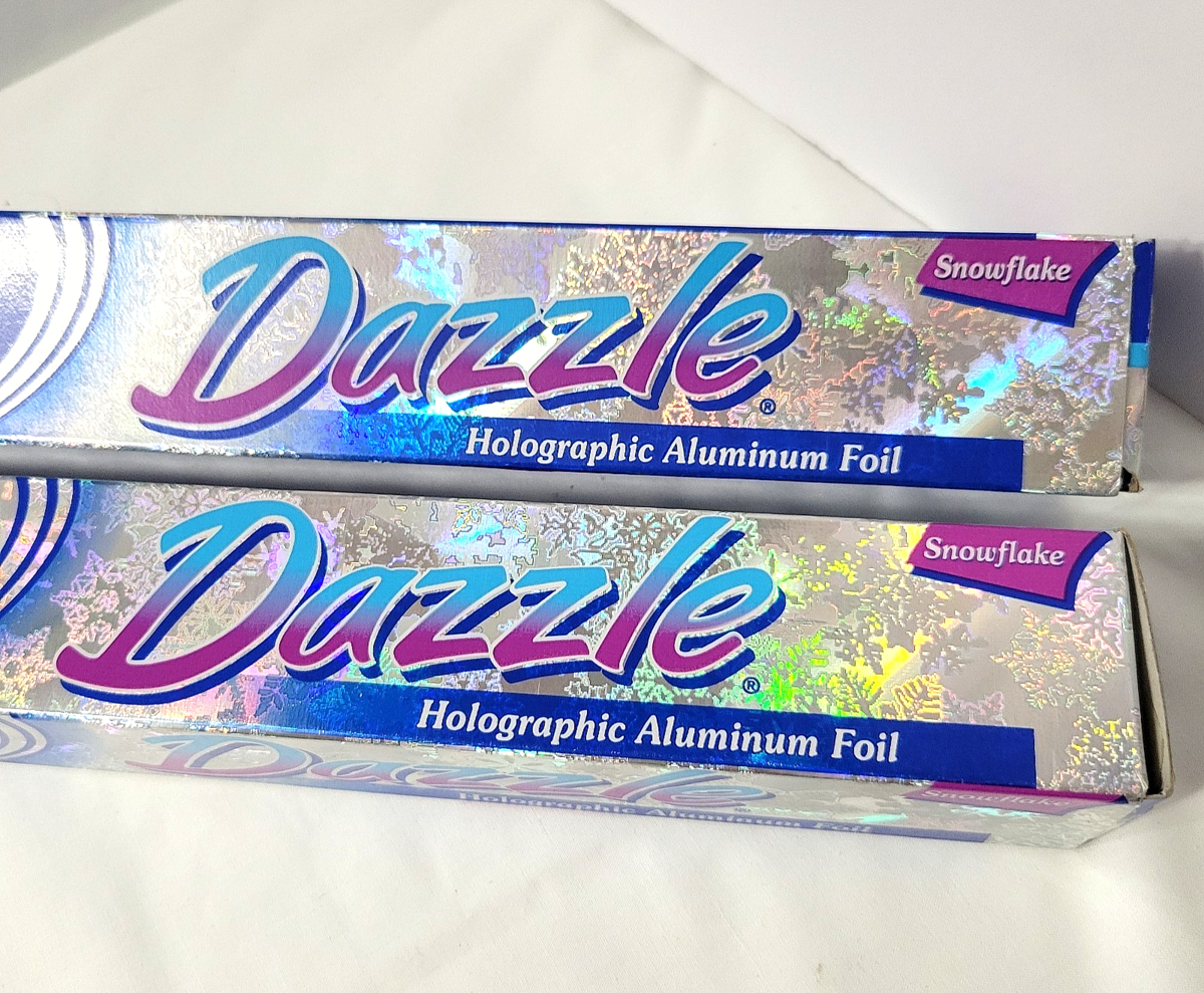 You will receive 2 New-in-Box 25 sq ft rolls of the vintage hard-to-find Holographic Dazzle Snowflakes aluminum foil from Reynolds Wrap