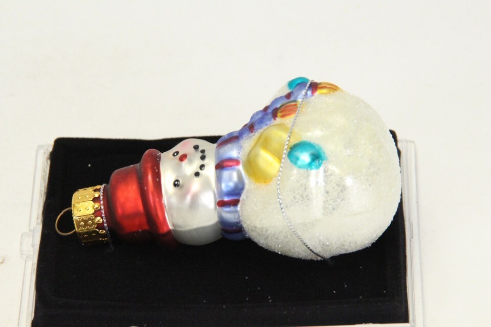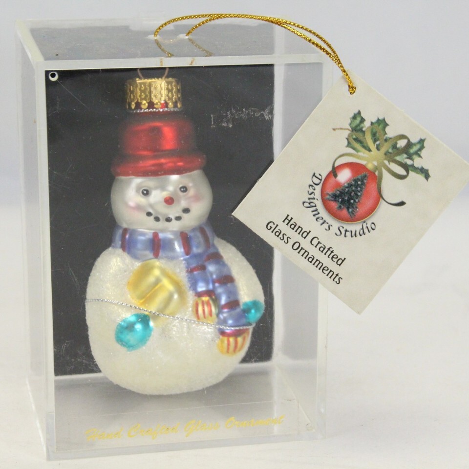 - Snowman Hand Crafted Glass Christmas Ornament In Box 3 1/2” w/ Tag