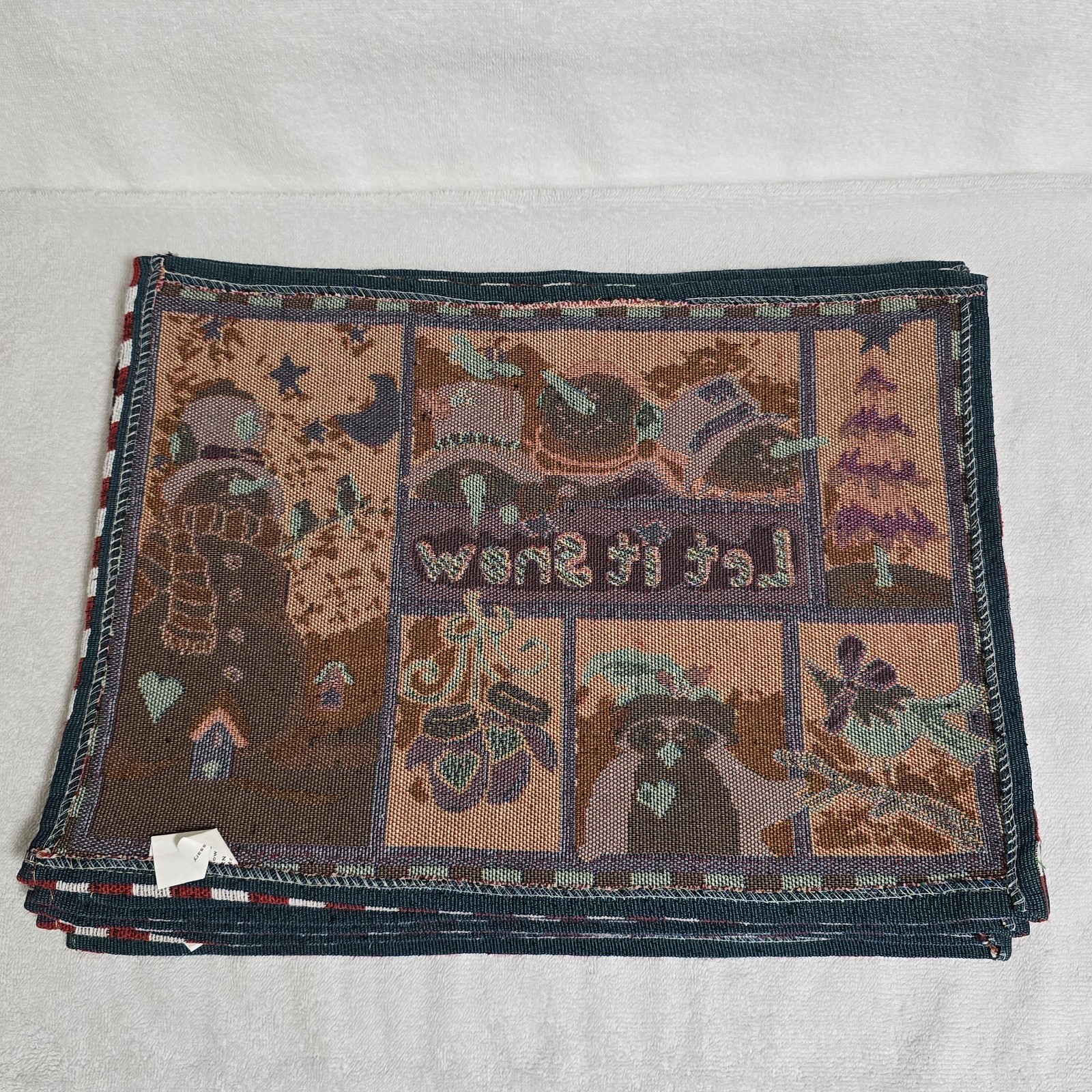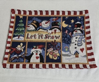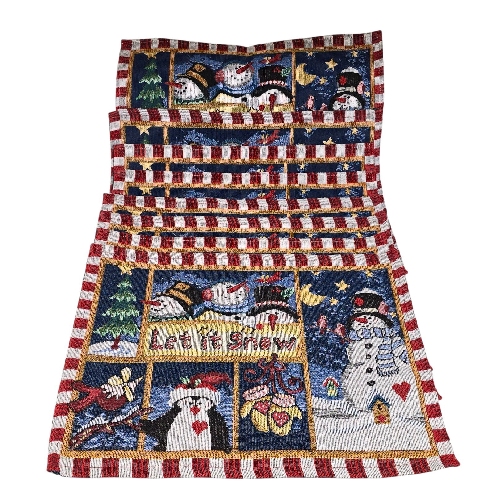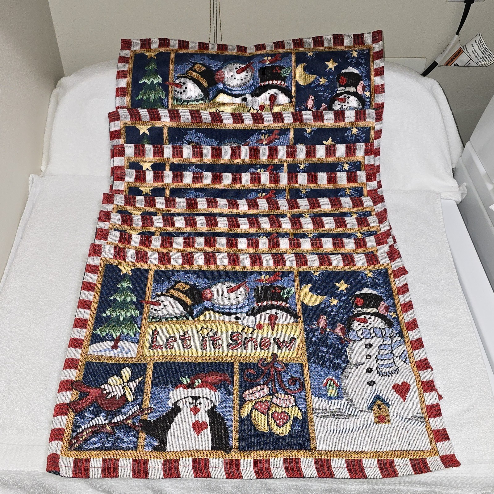 Excellent Condition Snowman Holiday Let it Snow Placemats Set Of 8 Tapestry - Approximately 16.5" x 13"