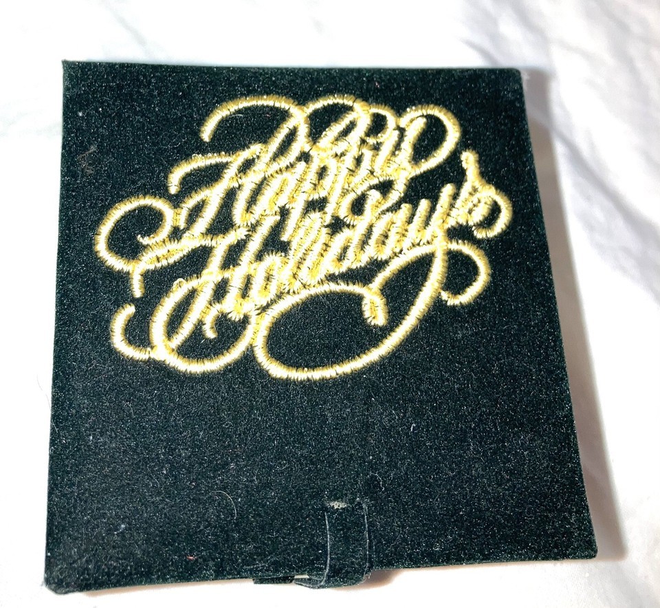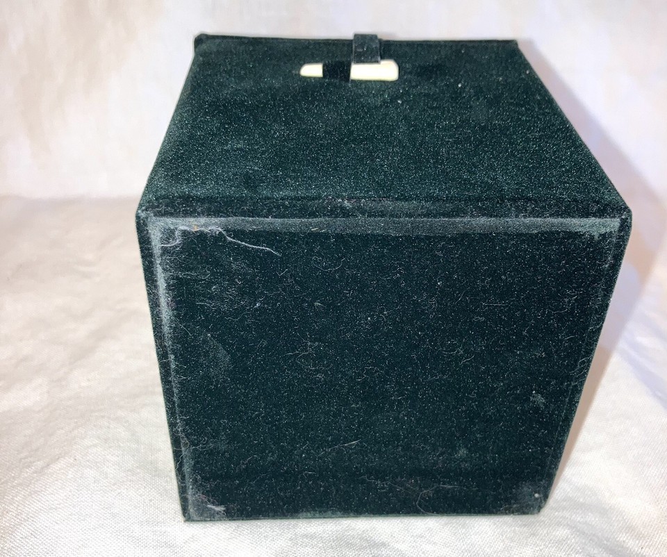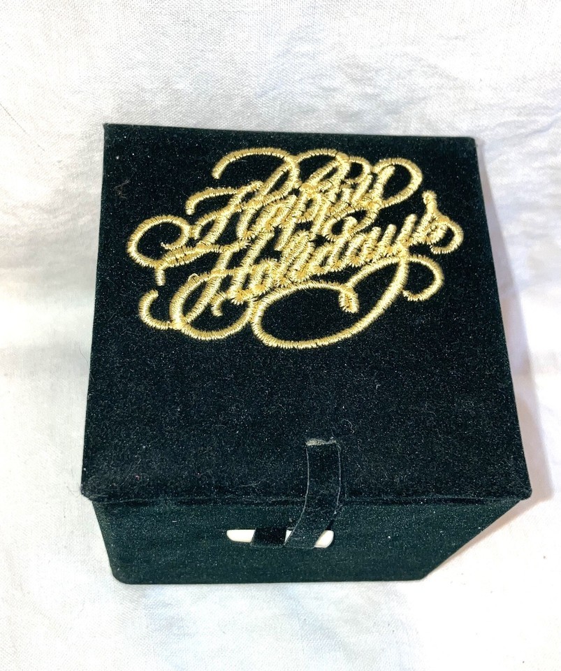 Happy Holidays Velveteen Gift box Green Satin Lined with Snowman Ornament. The ornament has it's own own special box to keep or give as a gift