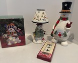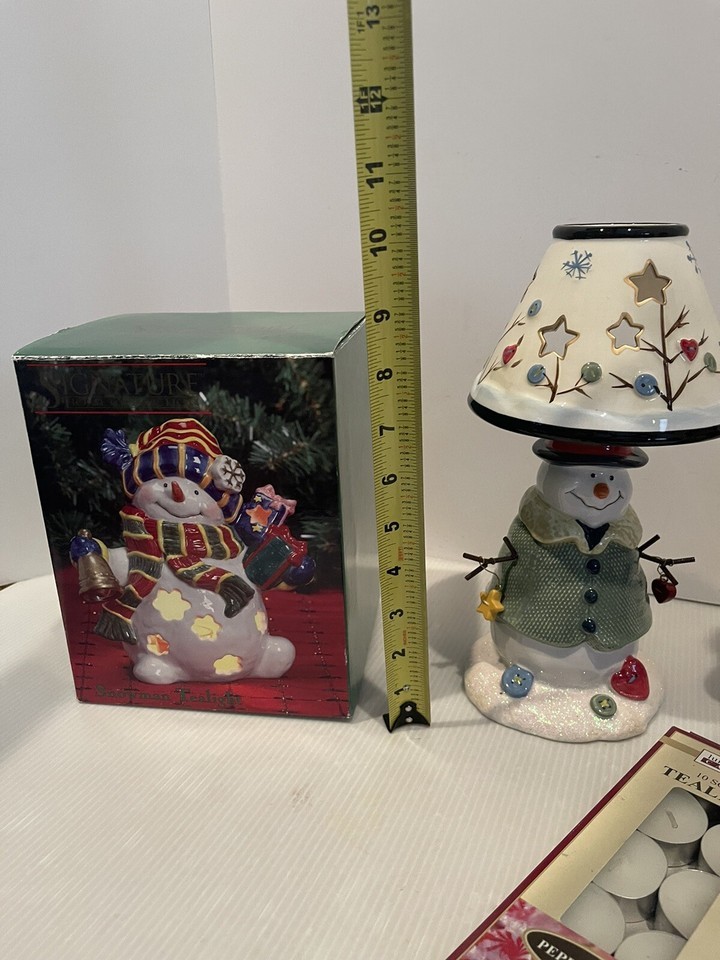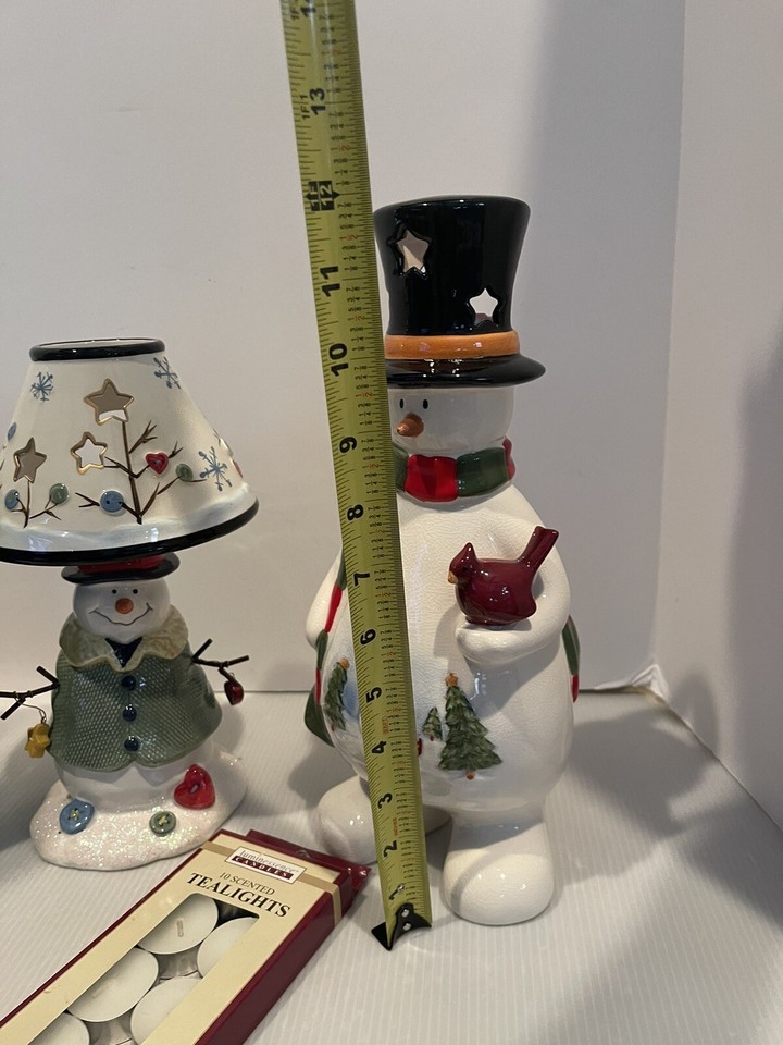 - Snowman Tea Light Holder Ceramic Holiday Winter 3pc Set