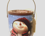 Here is a new 20 ounce candle a ceramic type container that looks like a can and has attached handle This is apple scent with cinnamon and clove, it has 2 wicks and is handmade, it has 100 hour burning time, the container has a rustic winter design and a snowman and reads Let it Snow, measures 4 inch wide by 4.5 inch high, nice winter and holiday candle and makes a nice gift item also.