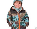 Snozu Boys Girls Jacket Blue Multicolor Camouflage Puffer Hat Pockets Inner Bib