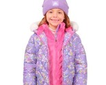- Snozu Boys Girls Jacket Purple Pink Hearts Puffer Hat Pockets Inner Bib