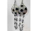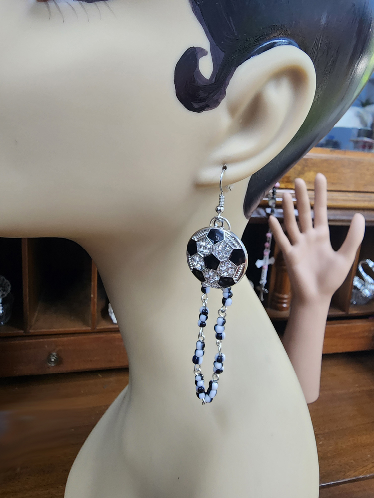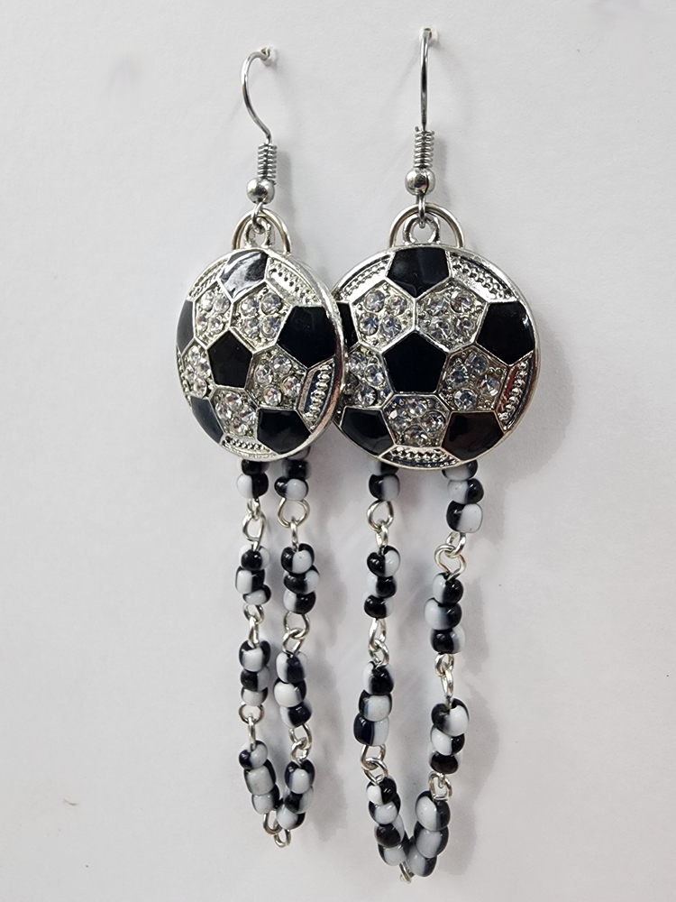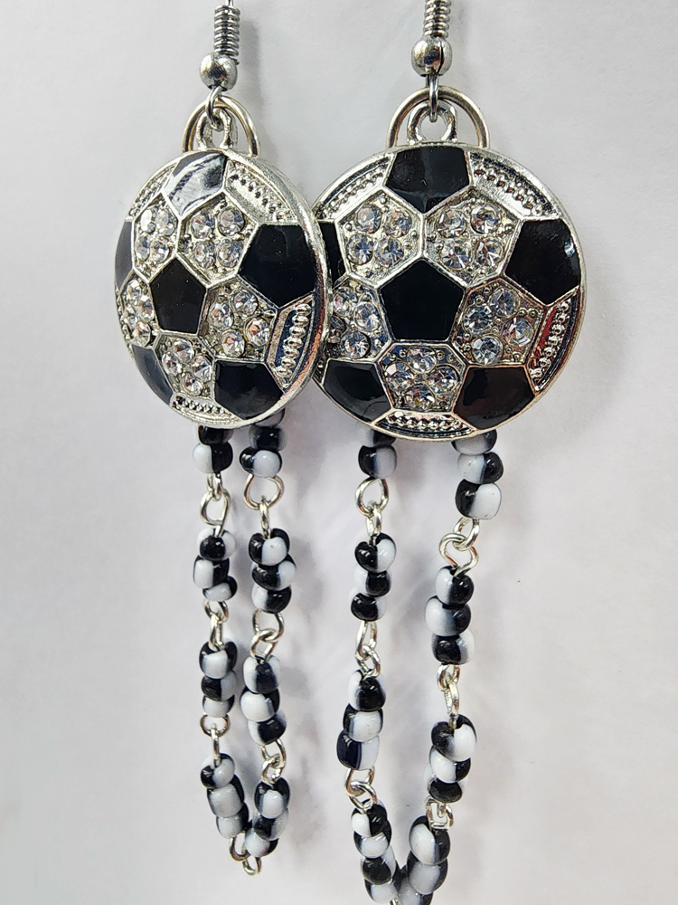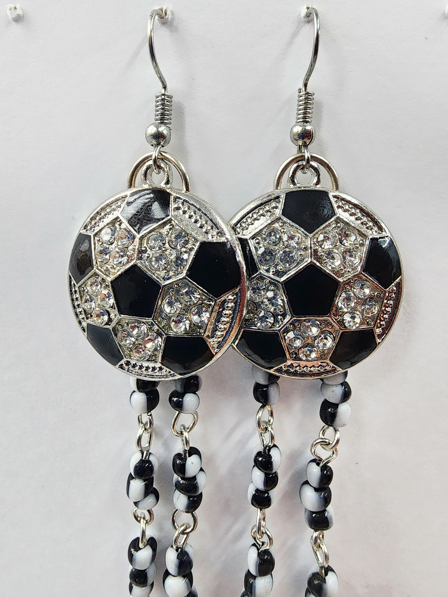 Soccer ball rhinestone bead earrings long dangles bling sports jewelry
