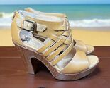 Sofft Ohanna Tan Woven Platform Leather Wood Look High Heel Sandals Womens 8.5