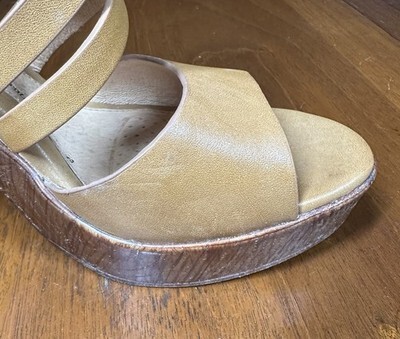 - Sofft Ohanna Tan Woven Platform Leather Wood Look High Heel Sandals Womens 8.5