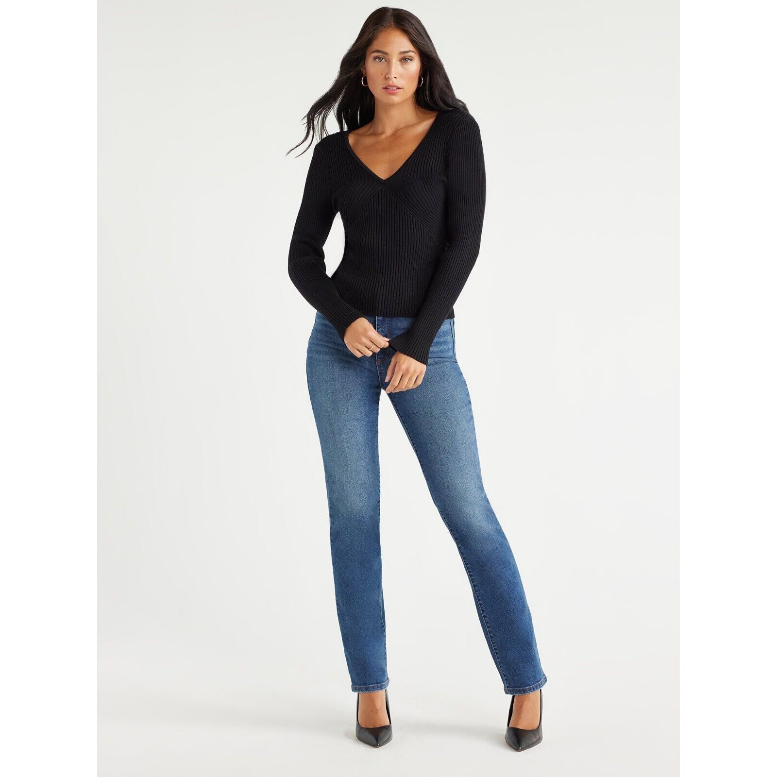 - Sofia Jeans By Sofia Vergara Women's Ribbed Sweater , Black Size 3XL