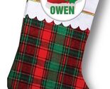 SOFT PLAID 18" STOCKING & CHRISTMAS SANTA HAT PERSONALIZED PINBACK BUTTON 3"