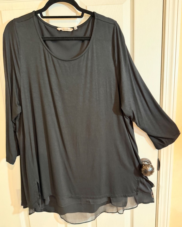 - Soft Surroundings Chiffon Hem Tunic Top Long Sleeve Casual Black 2X
