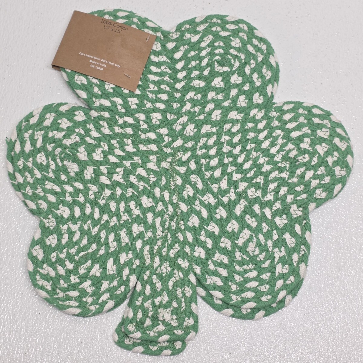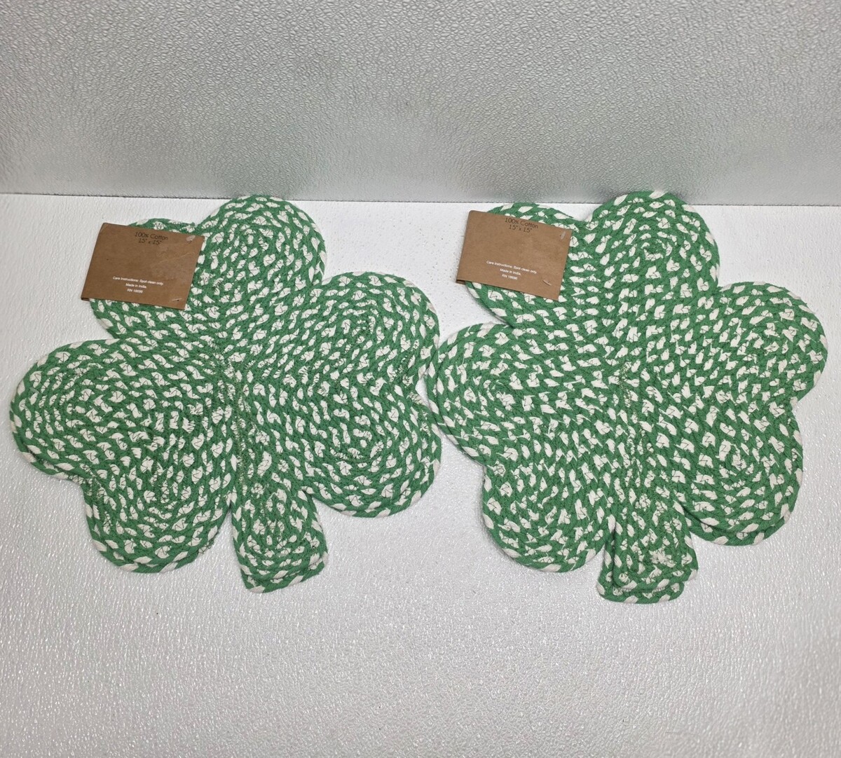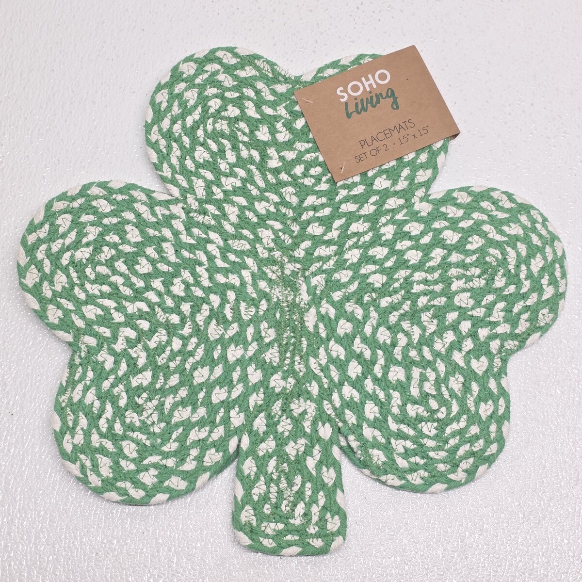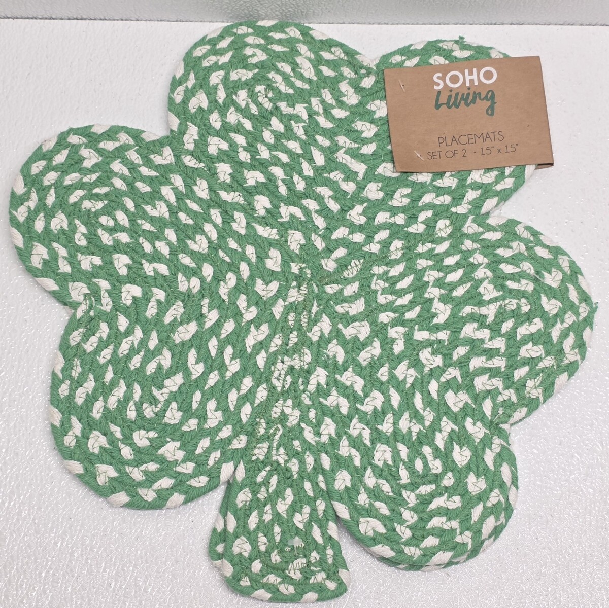 - Soho Living Shamrock 4 Leaf Clover Braided Placemats Set of 4 Green & White 15"