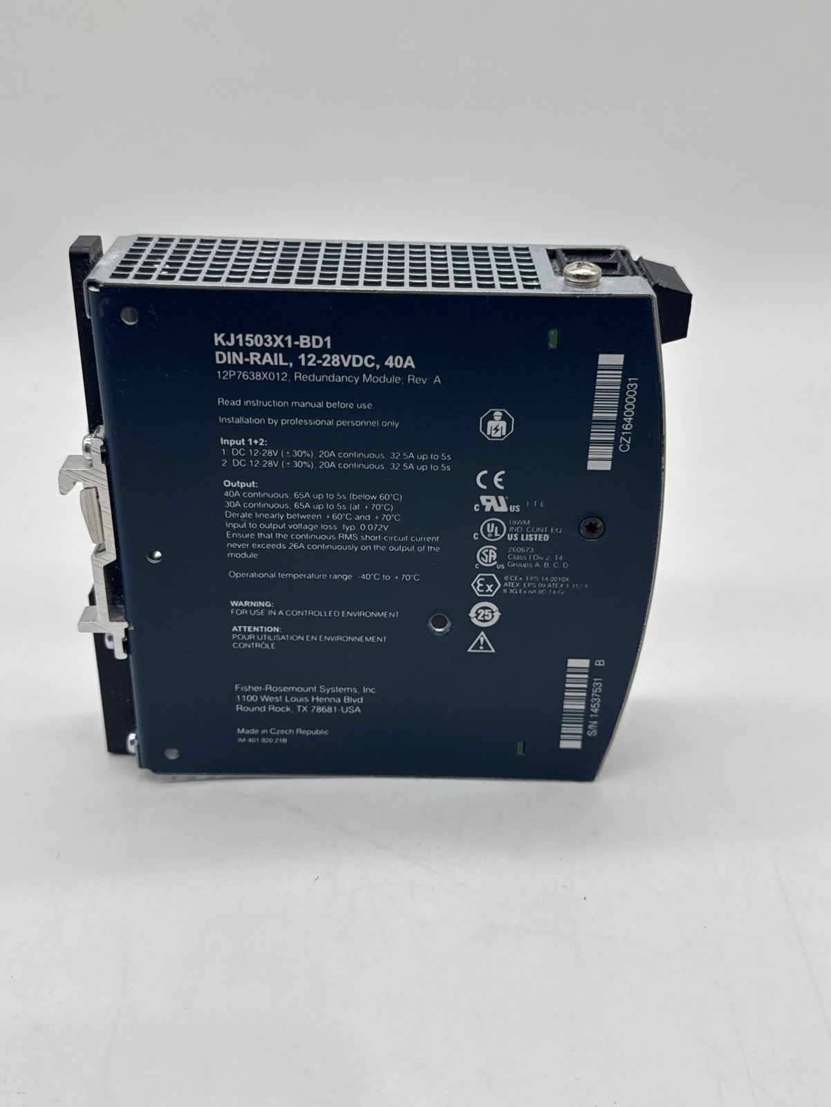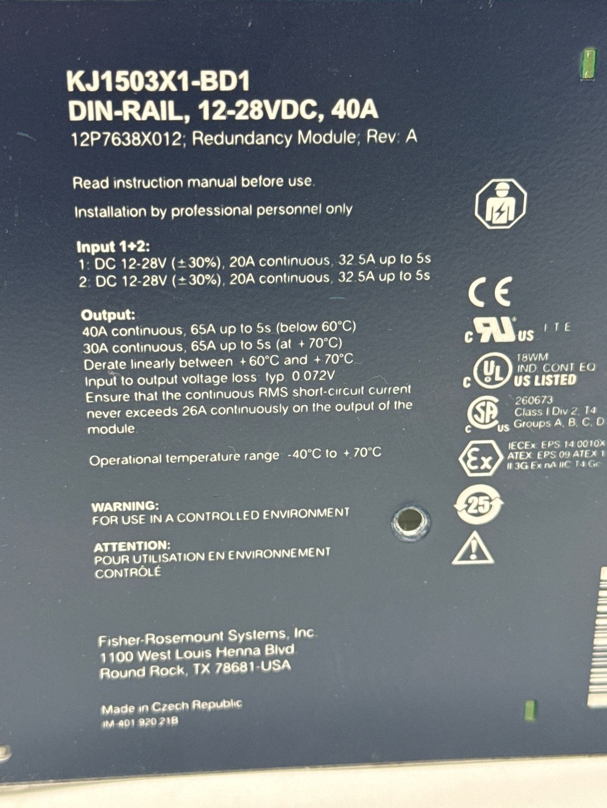 - Sola/Emerson KJ1503X1- BD1 Redundancy Module, In 12-28VDC 20A Out 12-28V 40A