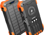 ?Built-in 4 Charging Cables?This solar charge power bank features 3 built-in output cables (Type C, Lightning, and Micro USB) and 1 USB-A input cable, so you never need to carry extra cables. Enjoy hassle-free charging at home, work, or on the go. Simplify your life by eliminating tangled wires and always having the right cable at your fingertips. Charge anytime, anywhere with ease.