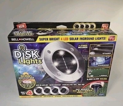 - Solar Lights Bell+Howell Wireless 4-Pack LED Disk Pathway Light 10 Hour Lighting