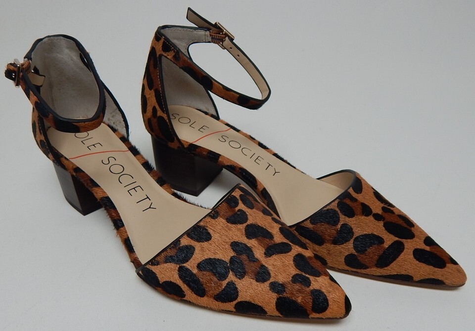 - Sole Society Katarina Size 7.5 M EU 38 Women's Fur Ankle Strap Pumps Tan/Leopard