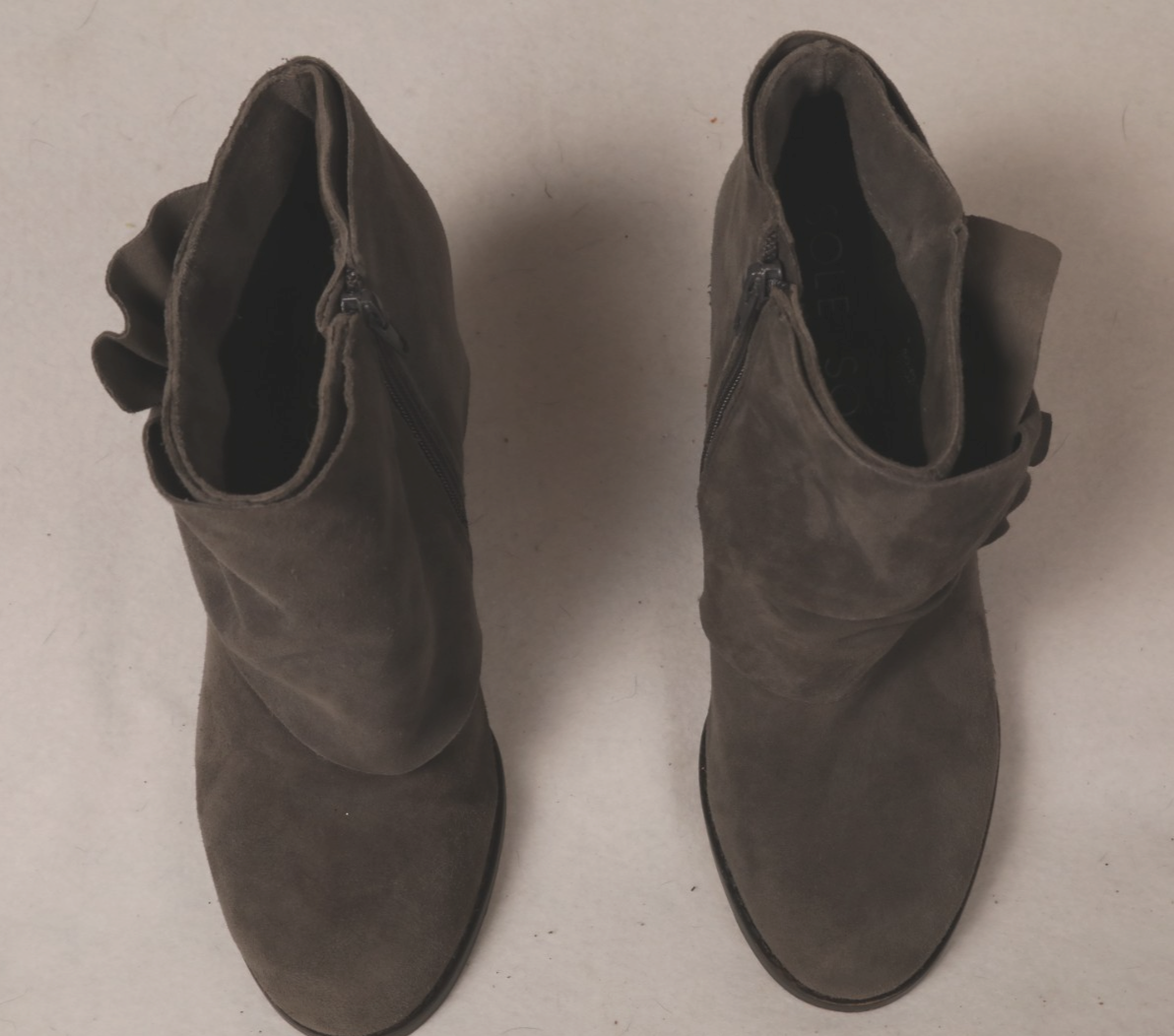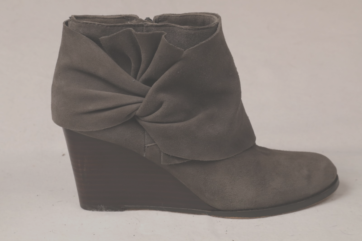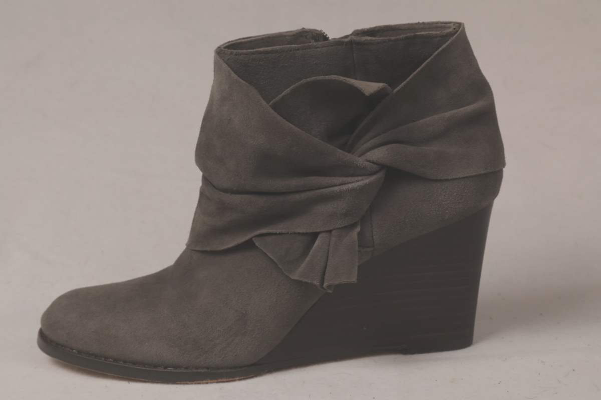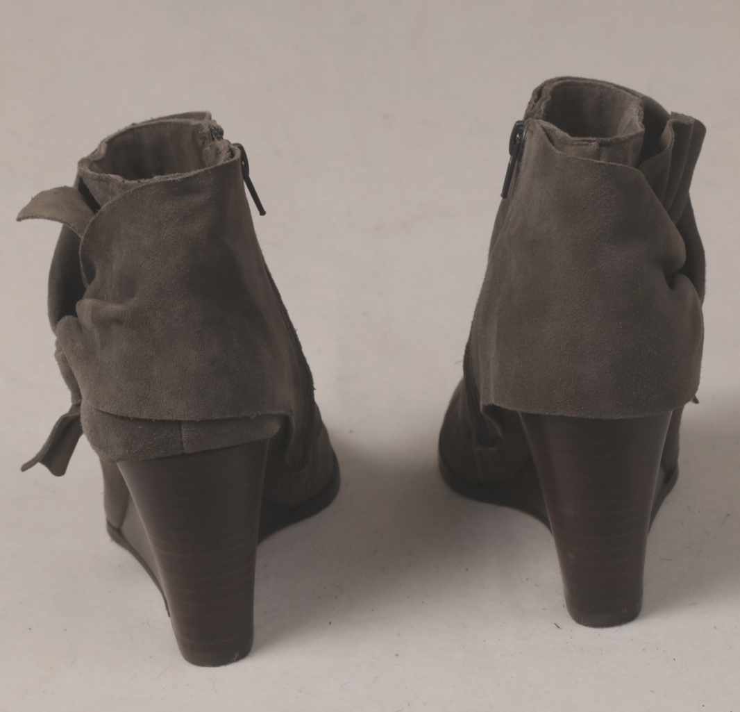 size 10 gray genuine leather Sole Society wedge heel booties with a gathered