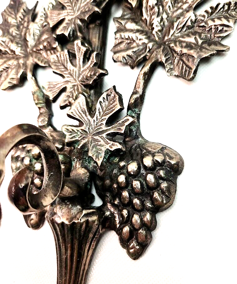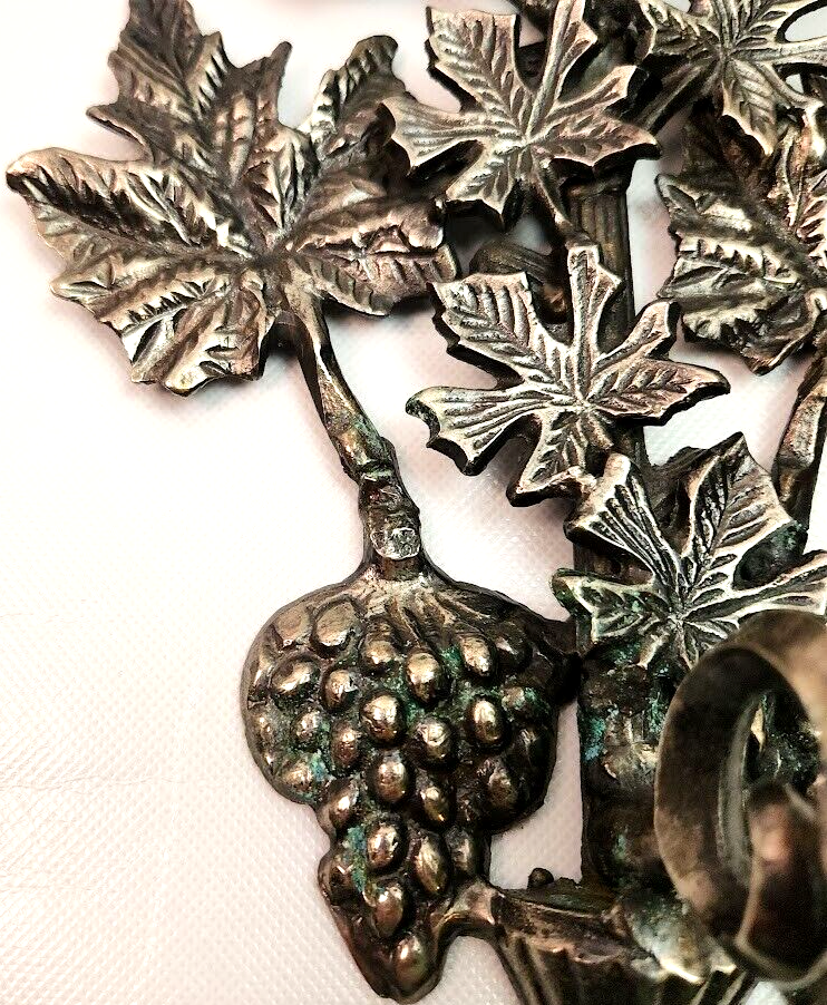 - Solid Brass Metal Wall Mount Candle Holder Sconce Silver-Tone Grapes~Leaves