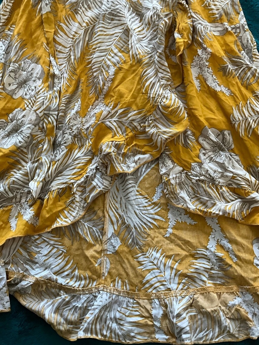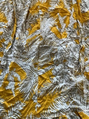 Solitaire Ruffle Front Maxi Skirt Yellow w Palms Elastic Waist Sash NWT Small