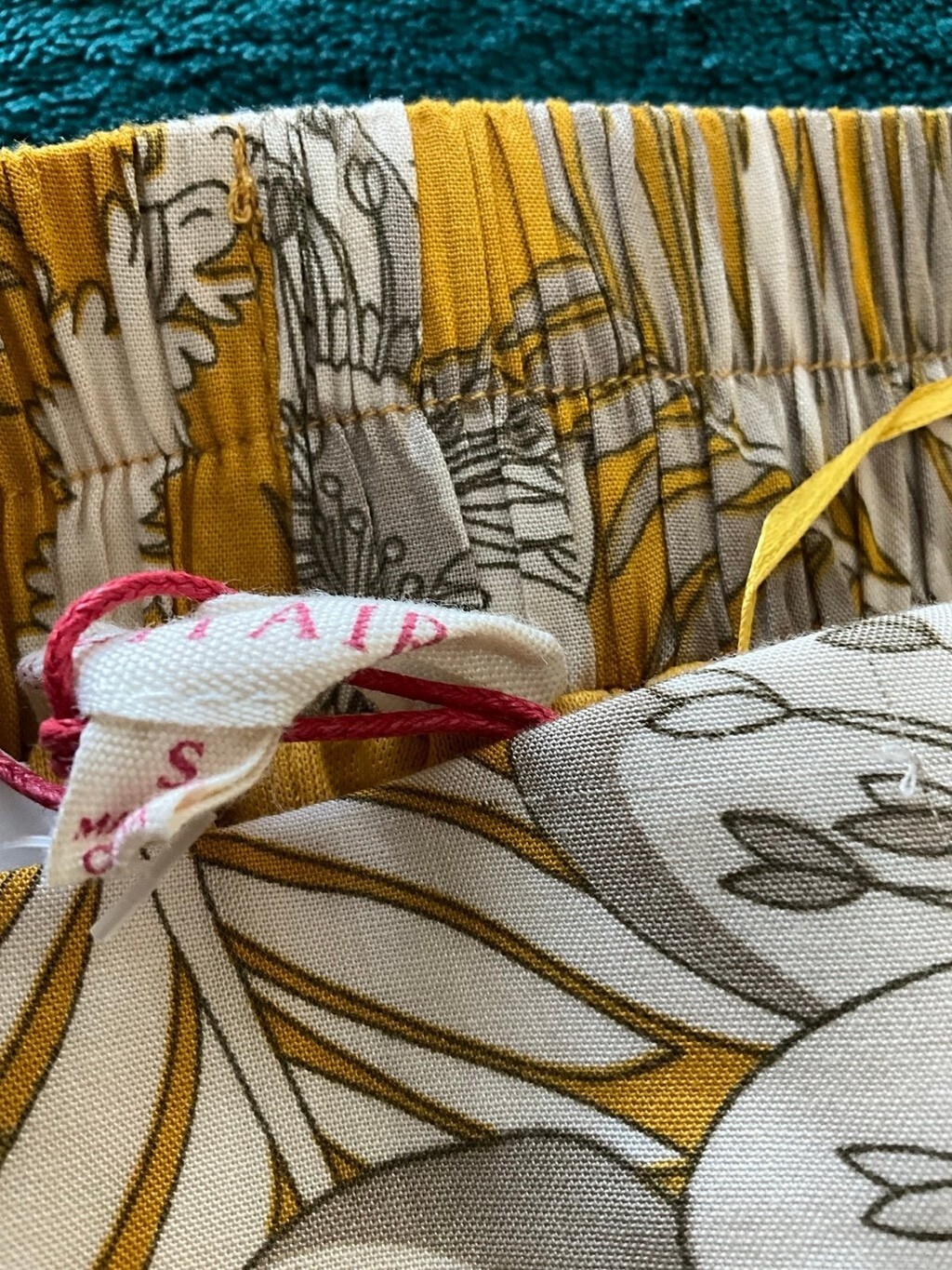 - Solitaire Ruffle Front Maxi Skirt Yellow w Palms Elastic Waist Sash NWT Small