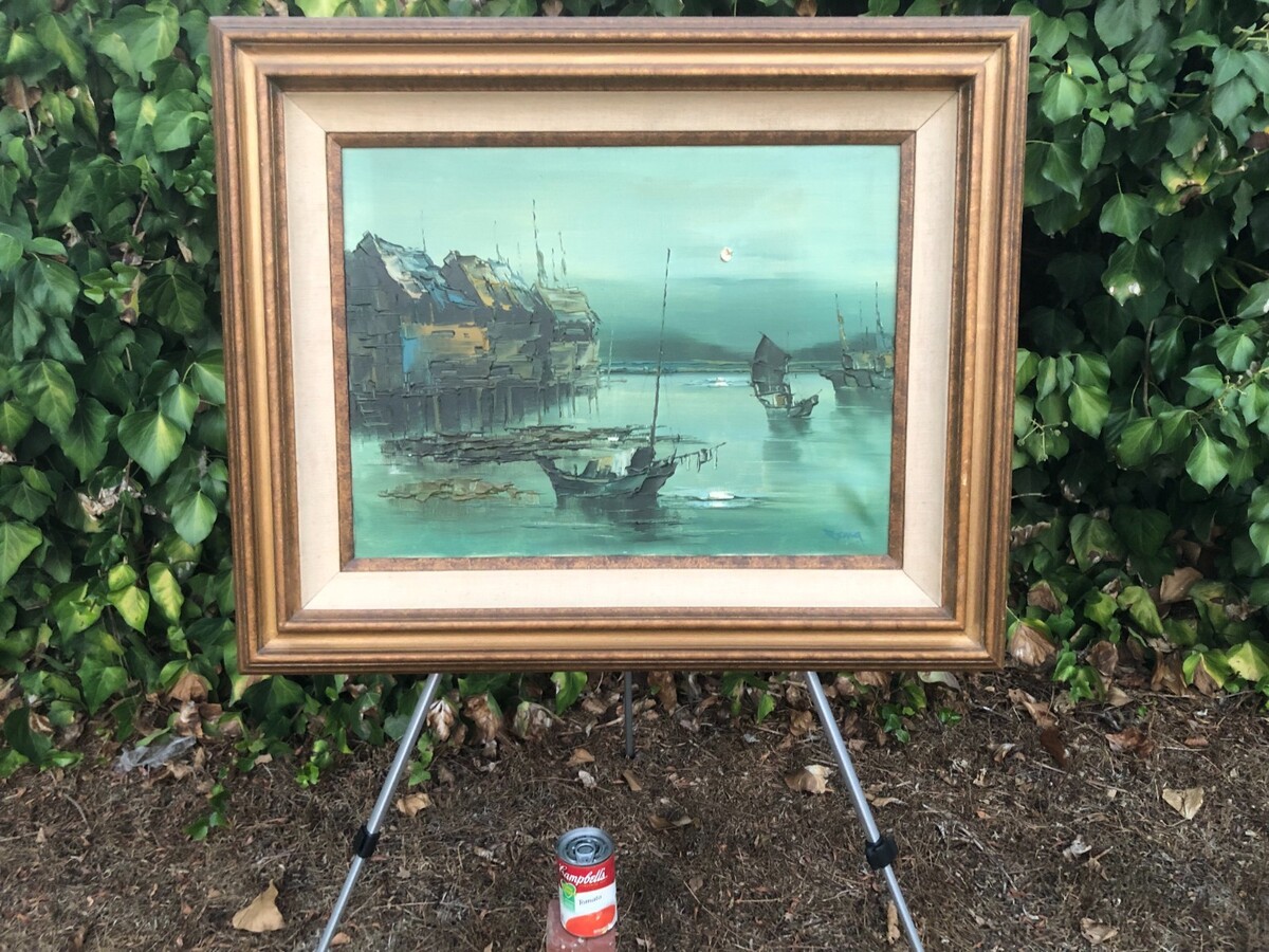 - SONG Original 1960s HUGE ABSTRACT HONG KONG HARBOR SEASCAPE IMPRESSIONISM MCM