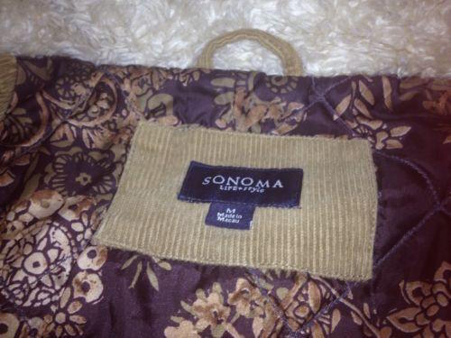 SONOMA Women's Corduroy Brown Faux Fur Lined Jacket Collar Coat Sz M Used in great condition overall. A button is missing off the left very bottom sleeve. Made in Macau.