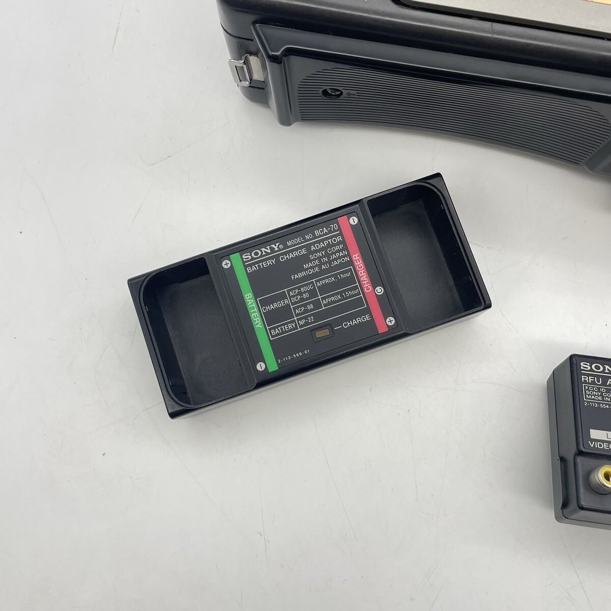 Sold AS IS for parts or repair. It powers on, the tape deck opens and accepts a tape, rewinds and fast forwards. No more testing has been performed. Comes with the battery charger, and a/c adapter as shown. Cosmetically in nice condition. Please see all photos for complete details. There will be no returns accepted on this item, sold for parts or repair.