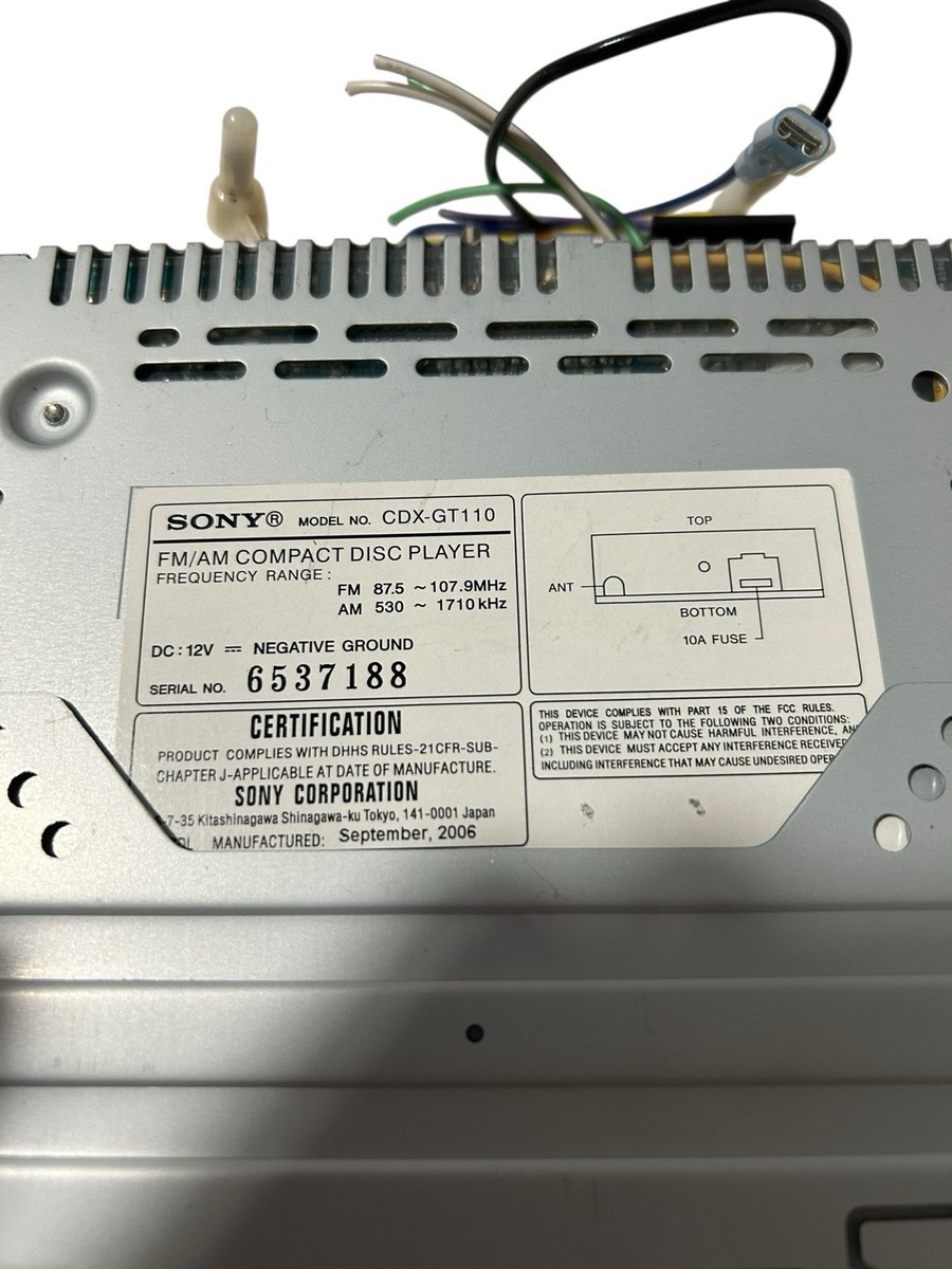 - Sony CDX-GT110 CD Player/MP3 In Dash Receiver Radio Stereo Clean & Tested
