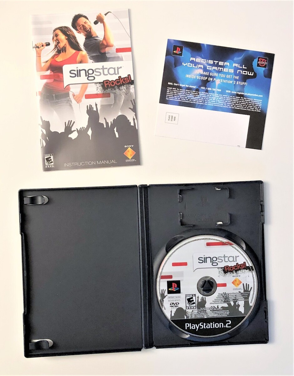 Sony Playstation 2 PS2 Sing Star Karaoke Amped Rocks! Singing Video Game. Games are in working condition and comes with cases, discs and manuals as shown in the pictures. Combined shipping is added to cart when you purchase multiple items at my shop.