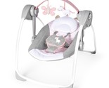 Bring comfort on the road with the Comfort 2 Go Portable Swing from Ingenuity. This mini baby swing is small on size but big on features. Soothe your newborn with automatic sway settings, 12 soothing melodies, 2 recline positions and 3 convenient timer settings: 30, 45 and 60 minutes. The small baby swings compact and foldable design makes it ideal for travel or simply moving around the house. Cushioned foot rests and side supports provide optimal comfort for your infant. You can rest easy knowing shes safe and secure thanks to an adjustable 5-point safety harness. The sweet pink design and butterfly and unicorn toys make this an ideal swing for baby girl. Use from age 0 to 9 months.
