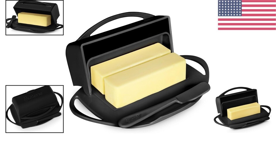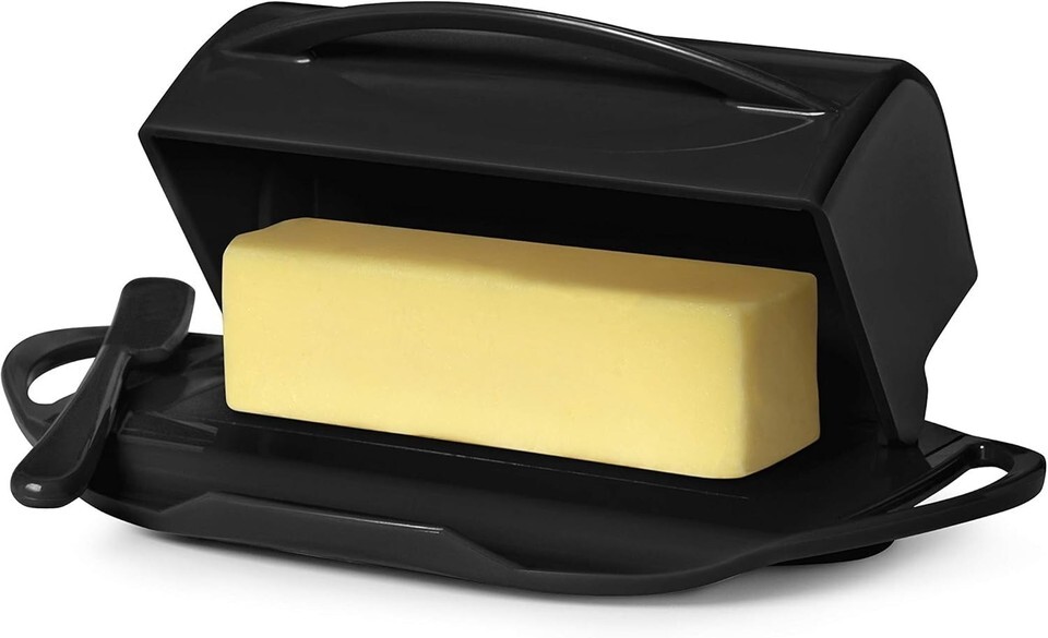 - Sophisticated Black Flip-Top Butter Dish with Matching Knife – Kitchen Essential