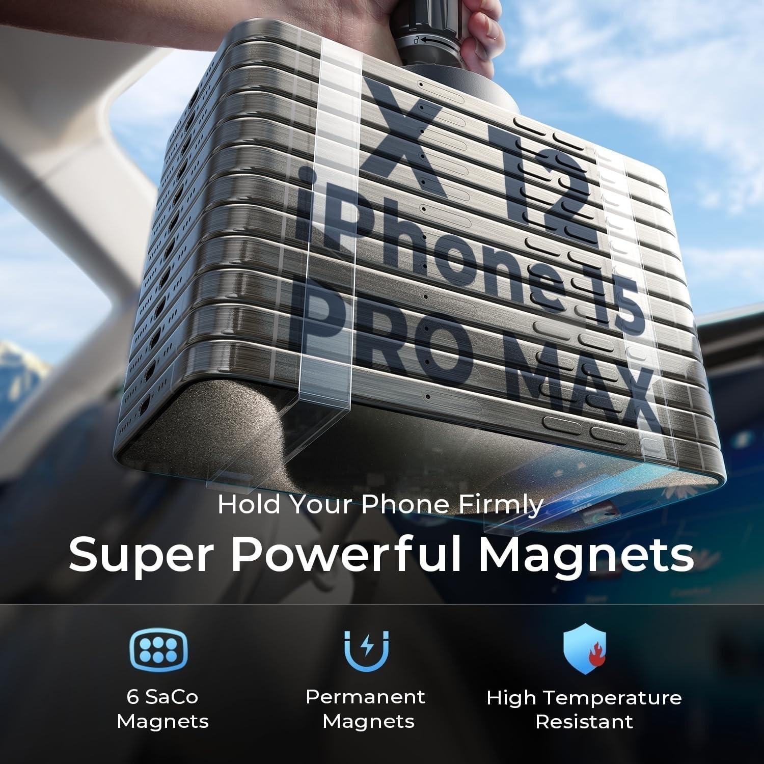 LISEN Car Phone Holder is officially certified by SGS RoHS and SGS CP65, and has passed tests for magnetism, phone signal, hook stability and ingredient safety. The quality-controlled car mount is compatible with the following devices: Galaxy Note20 S25 S24 S23 S22 U, iPad Air 2 / Mini, and other smart phones and Mini Tablet 3 / Pro 9.7 and above. NOTE:IT CAN?T BE USED WITH MagSafe and iPhone 12 - 16! Must use a metal plates or it won't work.