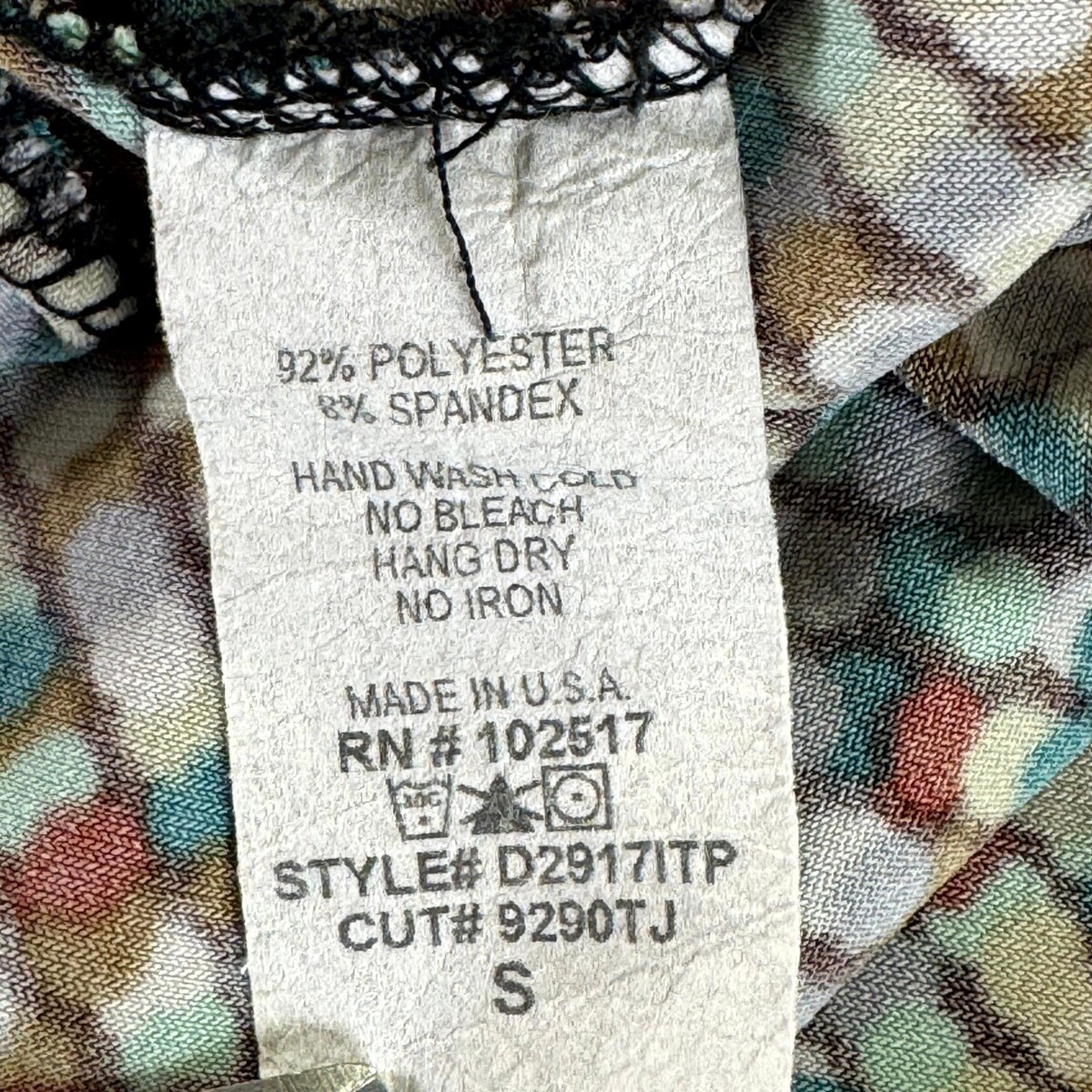 Soprano Geometric Print Midi Dress Small 70s Retro V Neck Fit Flare 3/4 Slv USA