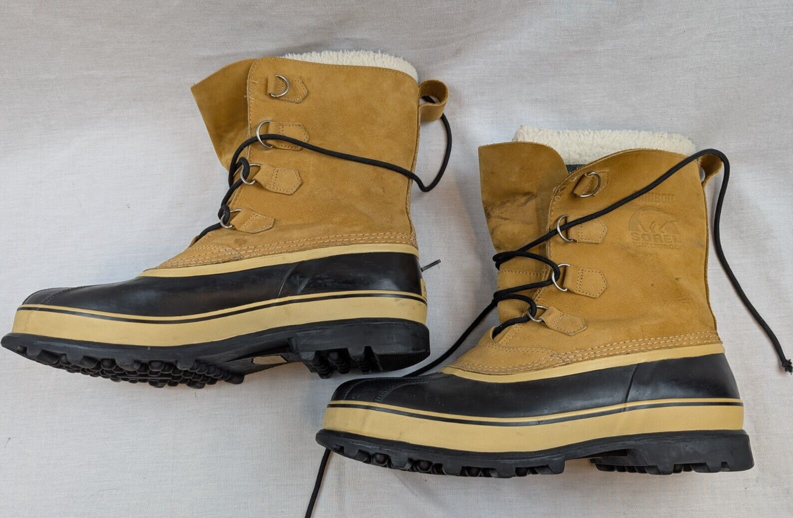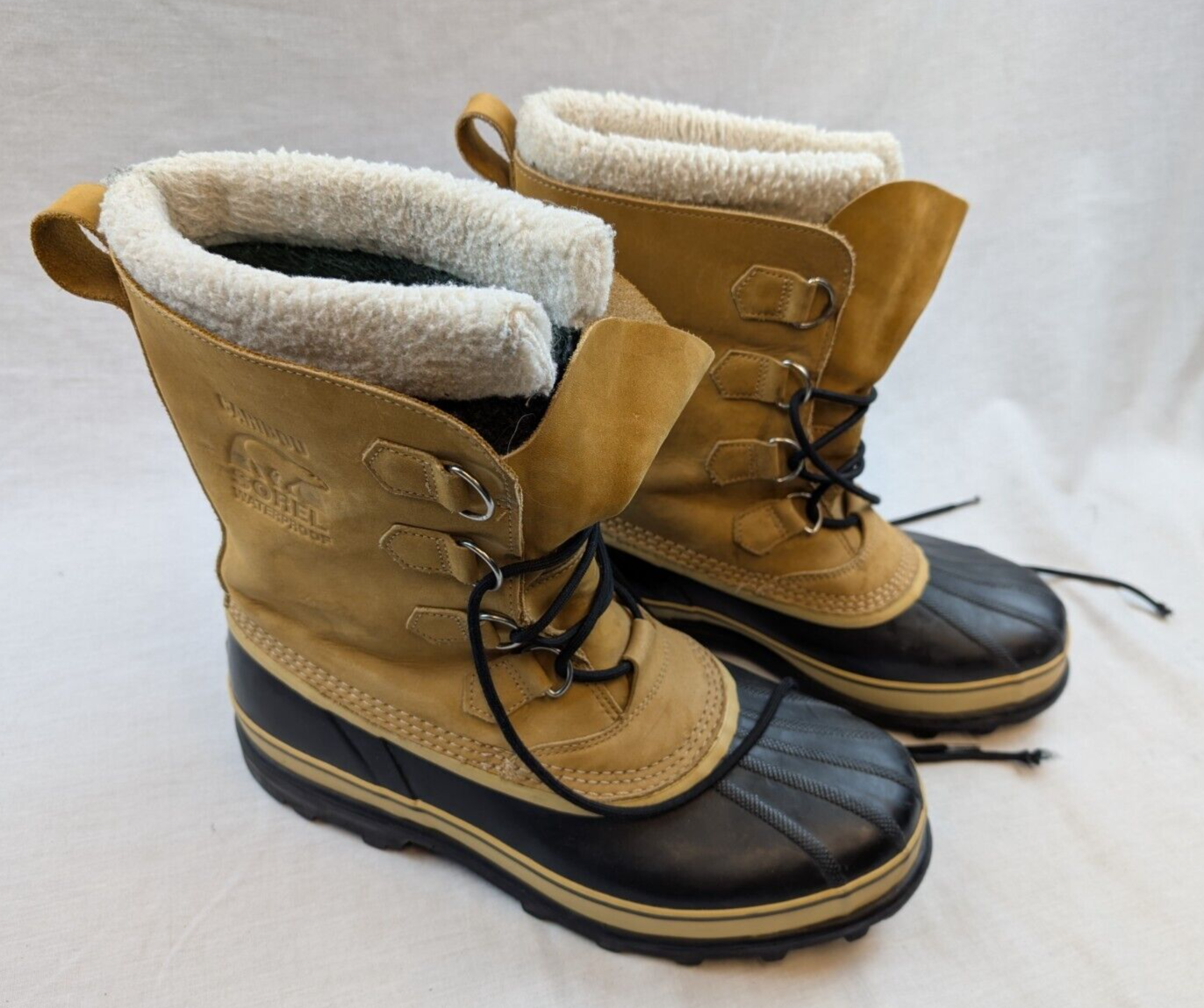 - Sorel Caribou Lace-Up Mid Calf Waterproof Leather Lined Tan & Brown Boots sz 13
