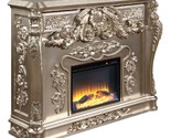 Enhance your estate with the LED electric Zabrina fireplace mantelregal looking and alluring with its antique silver finish and shell and floral ornamental moldings. Bring a subtle glow and warmth to any room. The faux wooden logs give off a realistic fire appearance. The fireplace functions include: Adjustable Temperature, Timer, Light Only.