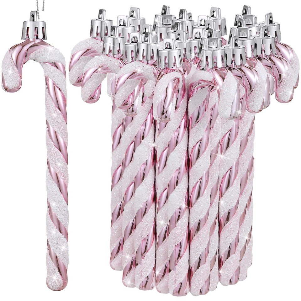 - Sotiff Plastic Glitter Candy Cane Ornaments Pink White 72 Pcs Holiday Decor
