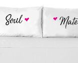 Romantic Design: Set of two satin pillow covers with Soul and Mate printed in elegant script and accented with pink heartsperfect for expressing love.