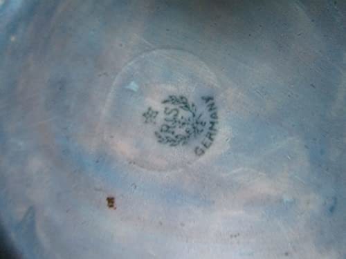 SOUP CREAM CUP WITH SAUCER GOLD AND BLUE, CUP IS RS, SAUCER IS LIMOGES [62] CUP IS 2 X 6" SAUCER IS 6 1/2" VERY GOOD CONDITION, SOME LIGHT SURFACE SCRATCHES COMMENSURATE WITH AGE [62bsktfrontrack4] About Us About Us Payment Terms Returns About Us