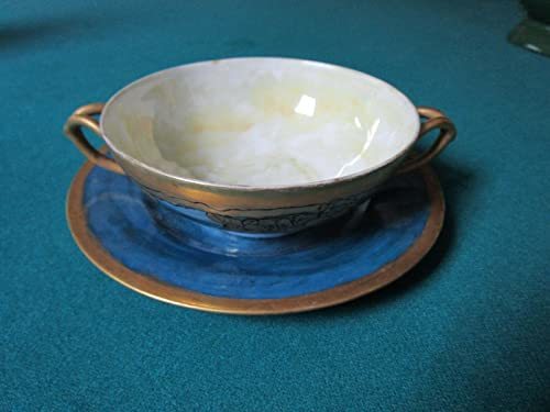 SOUP CREAM CUP WITH SAUCER GOLD AND BLUE, CUP IS RS, SAUCER IS LIMOGES