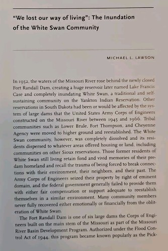 Case and completely inundating White Swan, a traditional and self-sustaining community on the Yankton Indian Reservation. Other