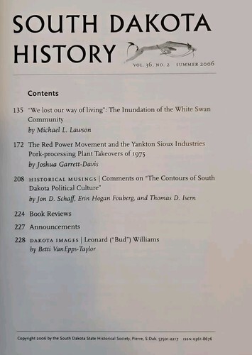 - South Dakota History Vol 36 No 2 Summer 2006 Inundation Of White Swan PB