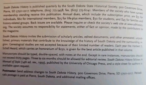 UP FOR SALE: South Dakota History Vol 36 No 2 Summer 2006 Inundation Of White Swan PB
