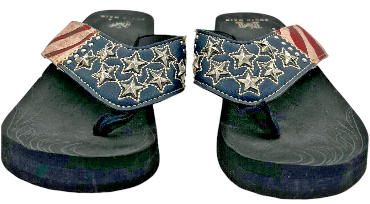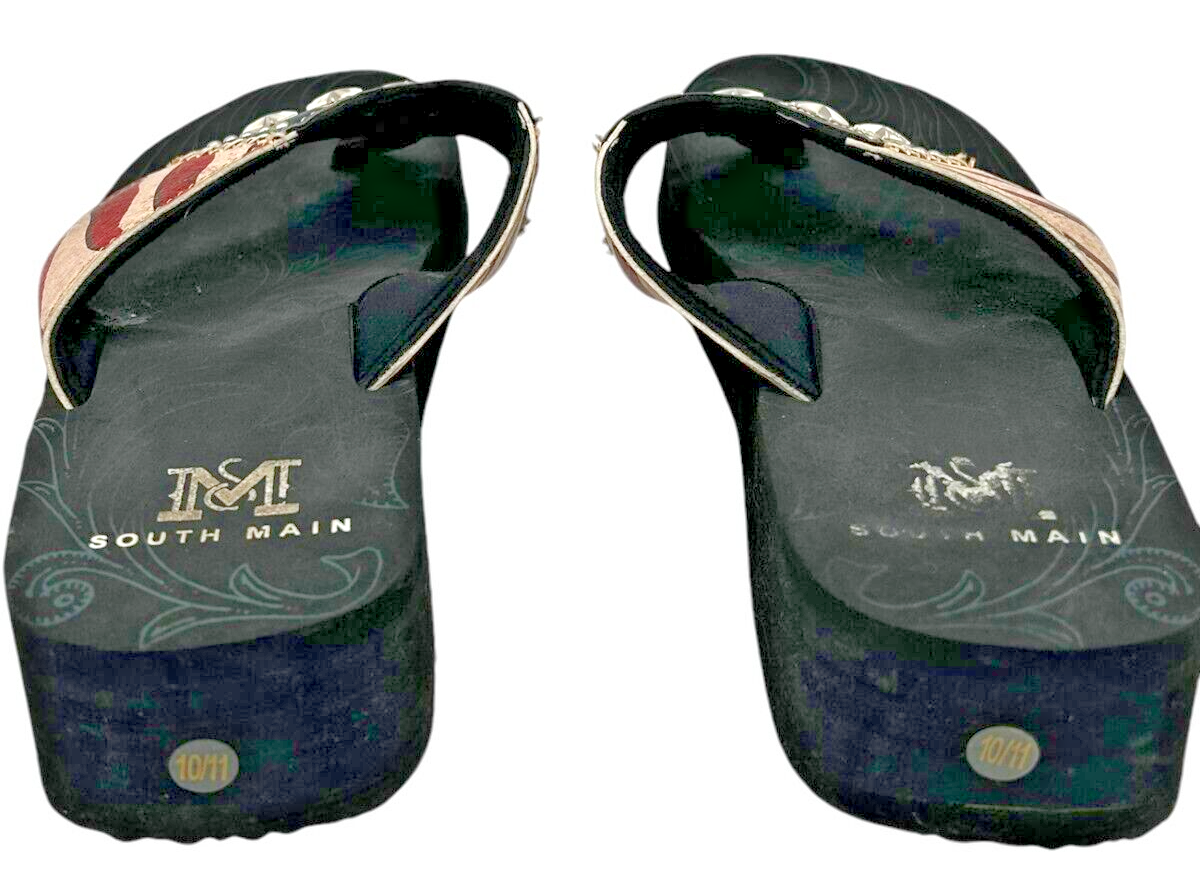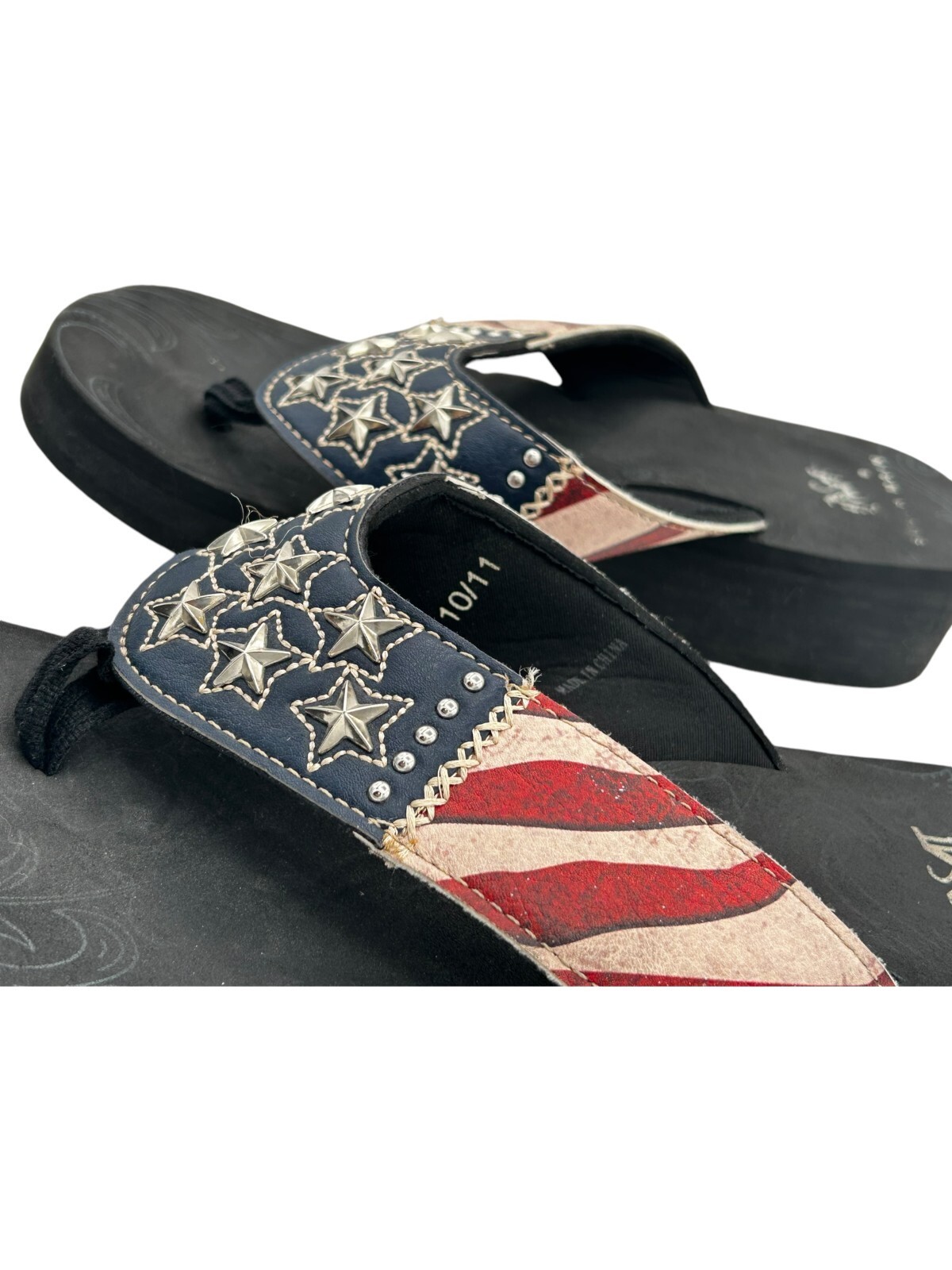 South Main Women's 10/11 American Flag with Studded Silver Stars Wedge Sandals