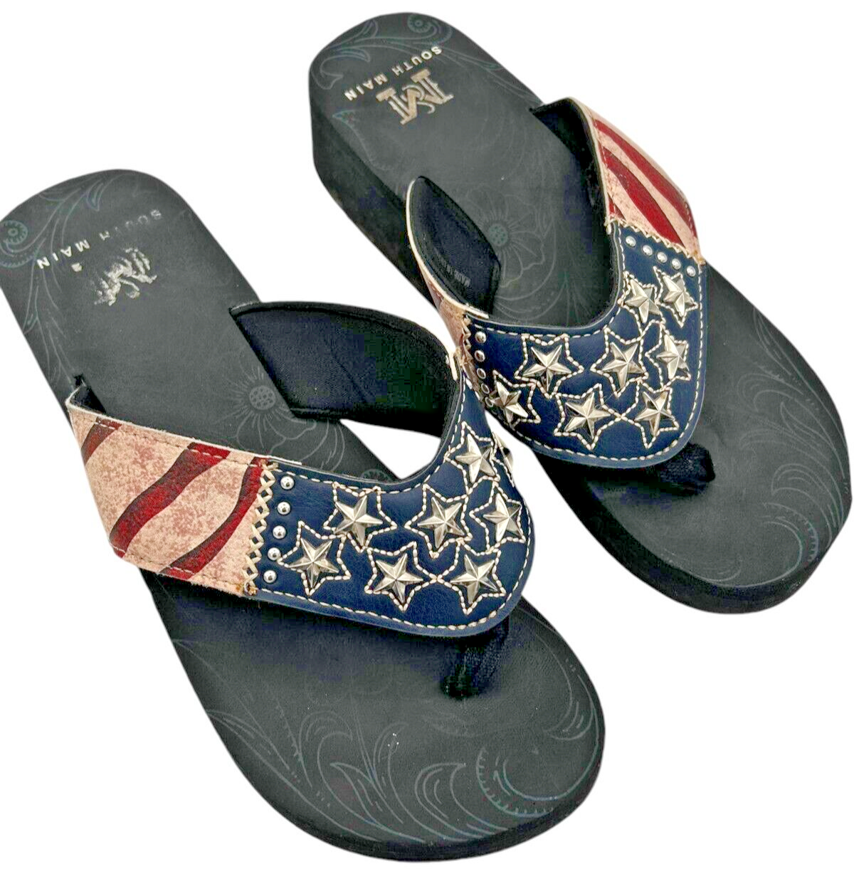 - South Main Women's 10/11 American Flag with Studded Silver Stars Wedge Sandals