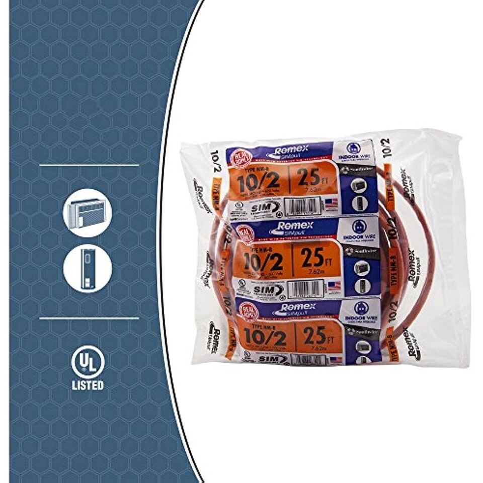 - Southwire 28829021 25' 10/2 with ground Romex brand SIMpull residential indoor