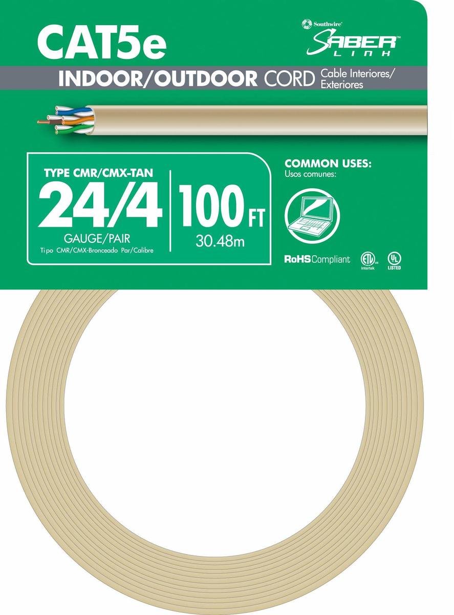 - Southwire 56917643 100-Feet 24-Gauge 4 Pair CMX Outdoor-CMR UL 75-Degree C Categ