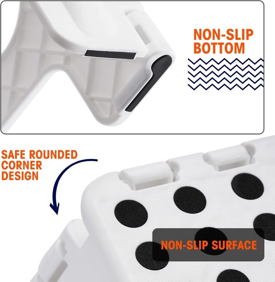 Features: With Storage,Lightweight,Portable,Foldable,Non-Skid Feet,Anti-Skid Top,Rubber Feet,Grip-Dot Textured Surface,Space Saving,Rounded Corners,Tight Hinges