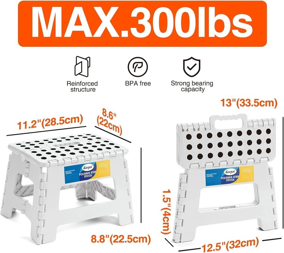 - Space-Saving 9-Inch Step Stool - Lightweight, Safe & Perfect for Higher