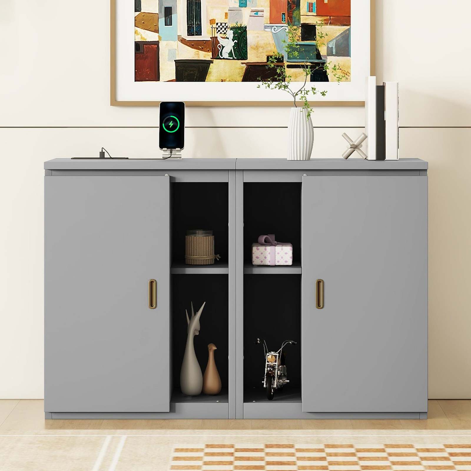 Space-Saving Full Size Gray Murphy Bed | Shelves, Cabinets, USB Ports